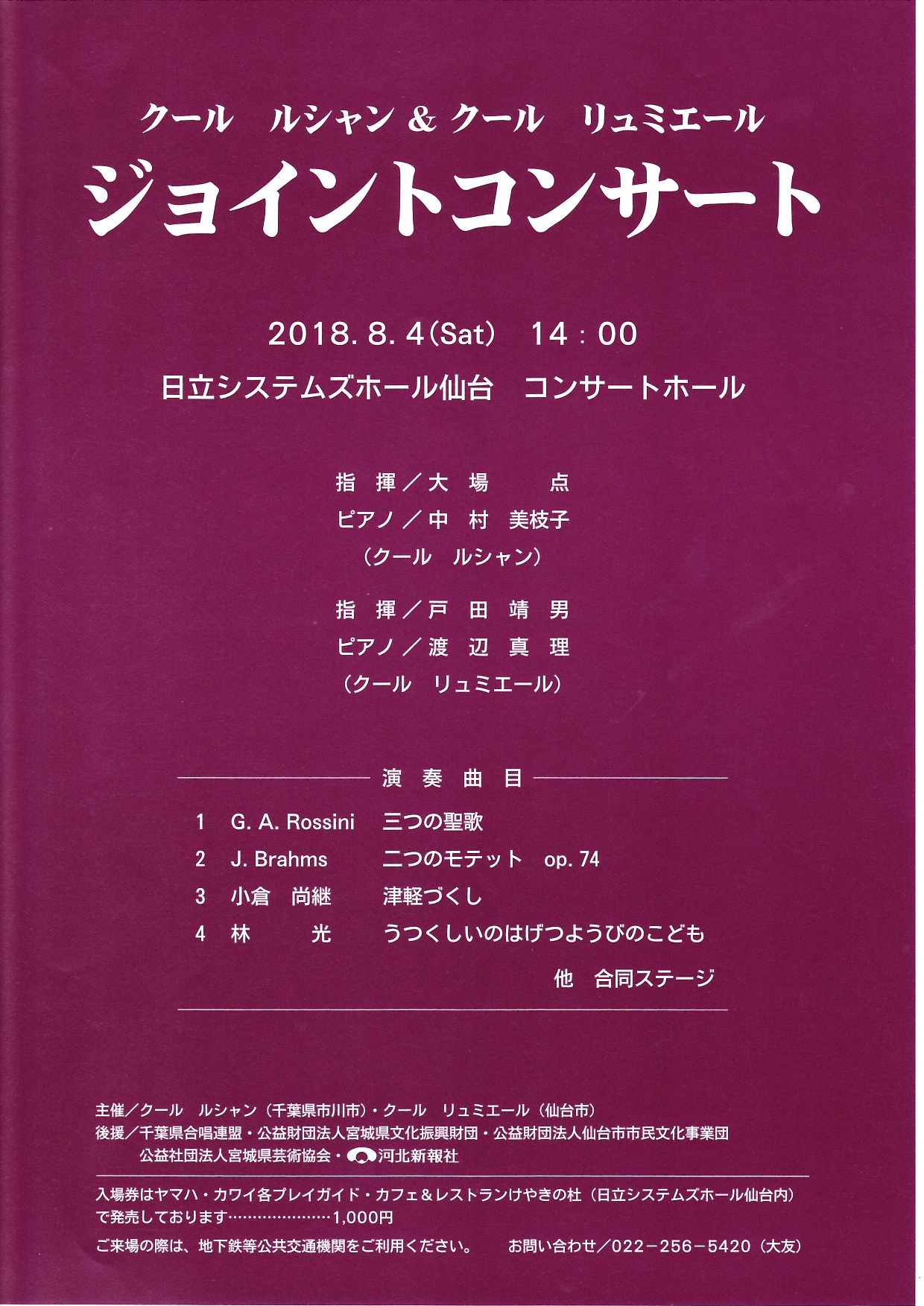※男性は通常練習後に「斎太郎節」の練習がありますので、既に配布されている楽譜を